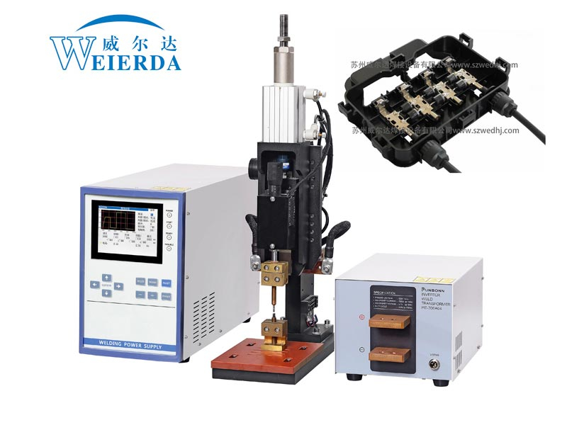 (1)接线盒连接器点焊机采用逆变电阻焊电源,节省焊锡,焊锡为消耗品,采用本公司的点焊机没有耗材,不需要焊锡,焊接电极为钨棒,使用周期长,耐用。